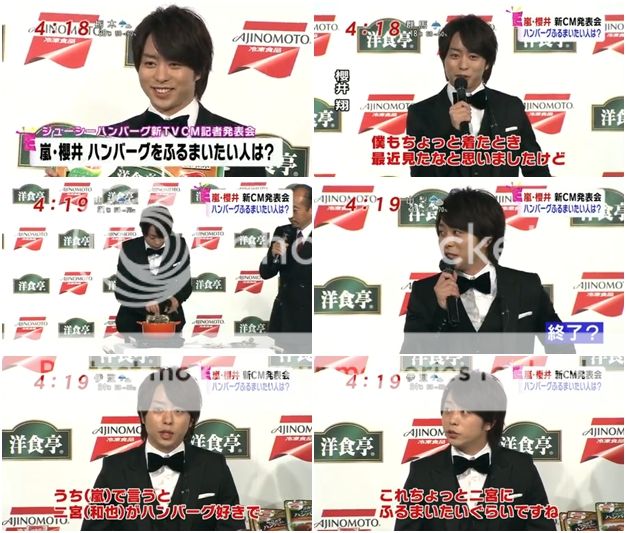 發布記者會上,阿翔好好笑。被要求來親自下廚做個漢堡肉,沒想到他就真的當機立斷的直接…………把快速包放進水裡。以上。噗!!還自己說了『就这样』。太好笑了吧你!!好吧,就是這麼方便就能做出美味的漢堡肉哦。我好想也買個來試試看呢。下次去日本購入。