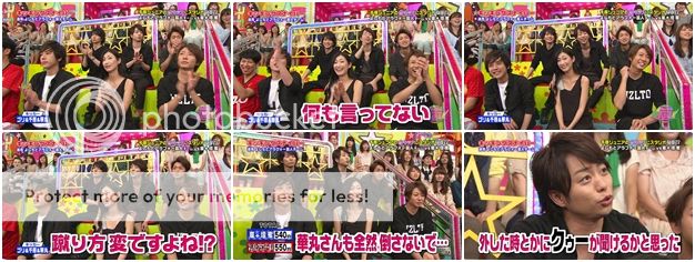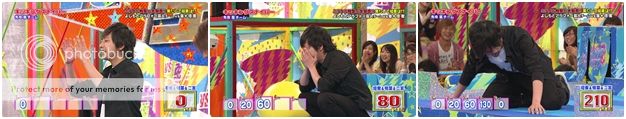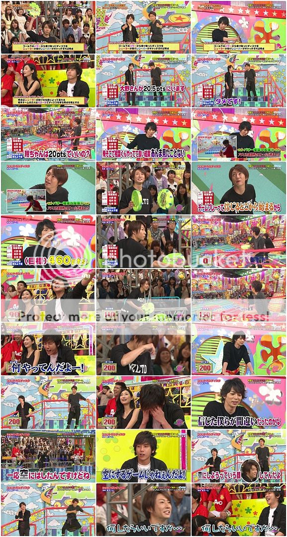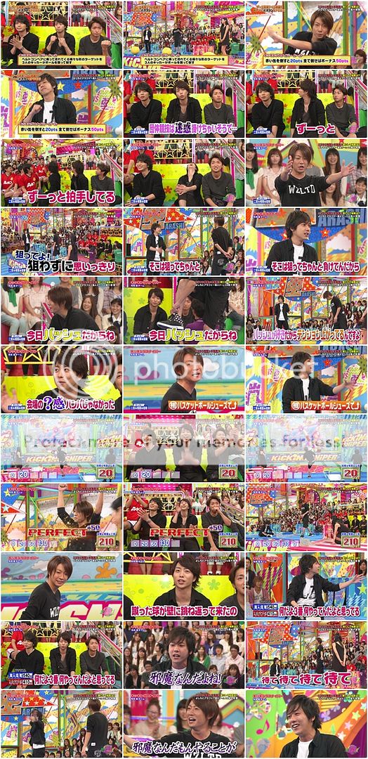 嵐派出的是坛蜜桑+雅紀+NINO。雅紀說他站中間所以不要有壓力,想怎麼踢就怎麼踢。NINO吐槽說『還是得給我瞄準。』 NINO今天依舊是玩的不好,這位第三棒可是一分都沒拿下。不過遊戲進行中一直看到NINO看著雅紀狂笑。結束時,NINO直接說雅紀是惡魔。哈哈哈!說是旁邊的雅紀太干擾了,每次開始踢球前就一直會很誇張的松展脛骨害他笑翻(明明就是你自己不專心)。雅紀倒是表現的很好呢所以多虧了雅紀,嵐隊勝出。