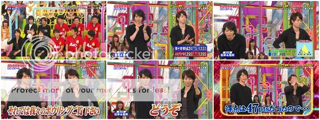 阿翔說『接下來嵐隊派出的是……』然後自己舉手。阿翔你這不是很好笑嗎?然後啊,大家都很想看SPARE的嘛,潤很疑惑這樣的局面要怎麼達到。每次說每次都做不到,阿翔也覺得他們有危機了。然後翔潤兩人太有默契了吧!!當阿翔很像做出預告時,潤竟然跟著他一起說『請』。我笑抽筋了啦。真的!!大家要去看這段,尤其是翔潤CP的飯,絕對可愛到爆!哎呀!!翔潤好久沒一起玩的BANK BOWLING竟然快轉了!!!!怎麼可以這樣!!!話說,你們默契太好了吧,竟然兩顆球完全走一樣的地方,推到的瓶子不多。下次再想想該如何達到SPARE吧。