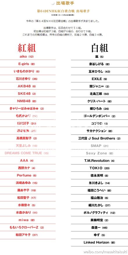 哎呀~ 今年的司會大人們怎麼如此帥啊!這排列我好喜歡!NINO竟然站在中間!哈哈哈!紅隊今年是綾瀨醬。