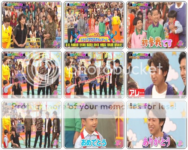 首先SAZAESAN隊竟然派出的是三位小孩喲。問什麼我們遙斗醬都是『ハイ(是)』,可是好像有一個問題阿翔問可是他沒理他。哈哈!小孩子還真是厲害啊!!!這應該算是小孩子第一次拿這麼高分吧!第二棒沒表現的很好也沒關係啦。