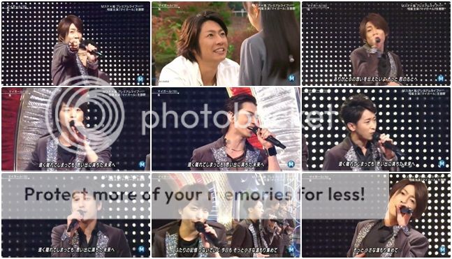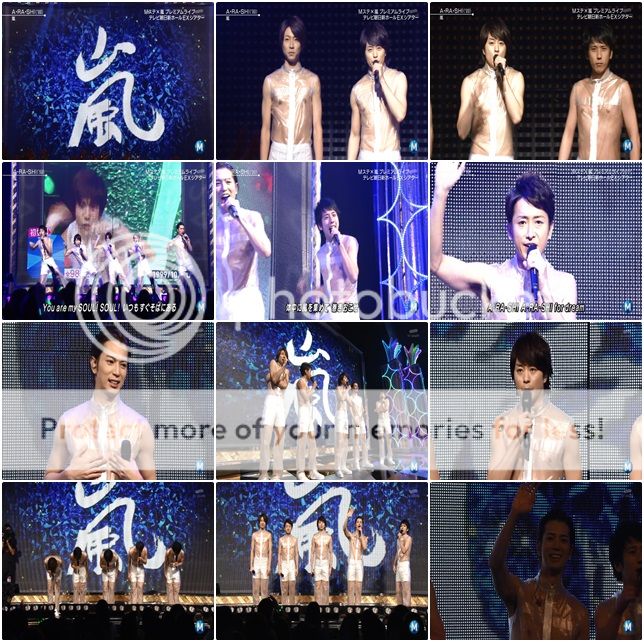 我的媽呀!!!VTR播放了嵐第一次在MS舞台上出道表演的歌曲《A.R.A.S.H.I.》然後…………屏幕打開,忽然對上了透明雨衣的雅紀和阿翔!!我整個瘋掉!!然後看到NINO了!!天啊!!我瘋了我瘋了!!怎麼會這麼厲害啊!讓嵐重現了當年的風采啊!