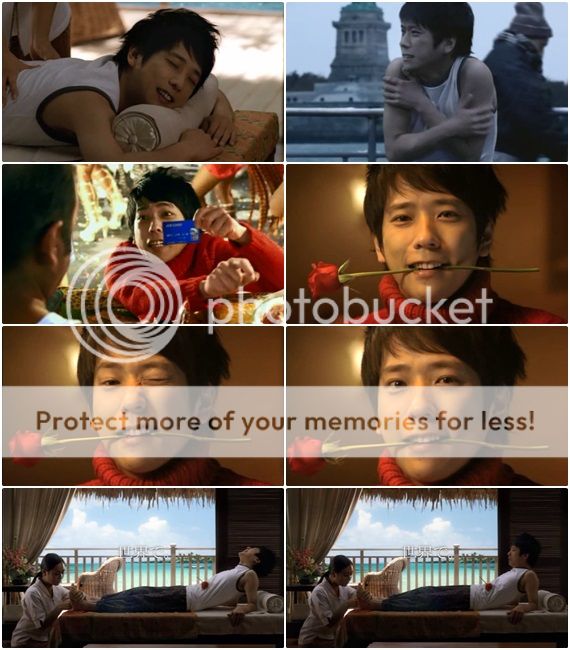 原本在享受著按摩的,忽然鏡頭跳到一個冷到半命的地方而且我們行長還只穿了這麼單薄的衣服,用JCB買了毛衣又忽然跳到很熱的國家,行長好忙哦老是要脫掉衣服又穿回去。哈哈!最後看到性感舞者的那個WINK超級可愛的!!!原來一切都是他的幻想啊。哈哈哈!日本CM為何每次都能做的這麼棒啊!