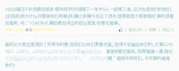 最喜歡阿翔說的那句:嵐五人比嵐飯更喜歡嵐這個團體。15週年、20週年、30週年要一直在一起喲!!