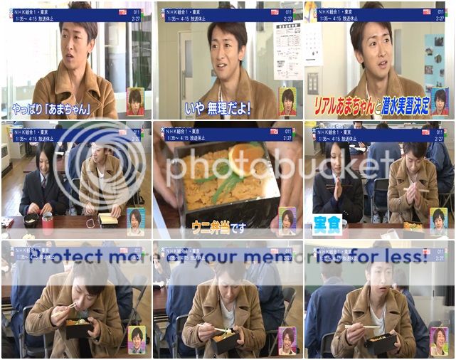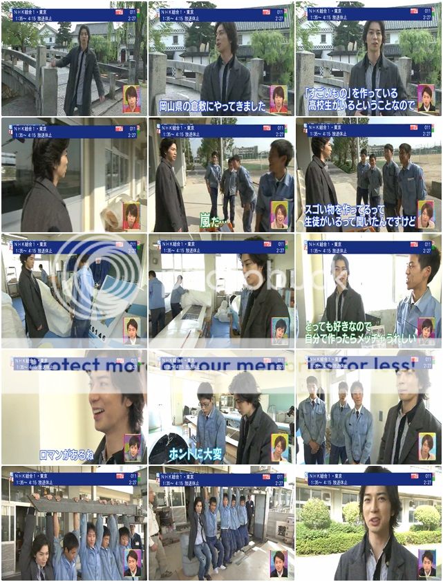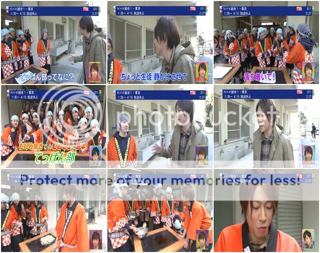 被吸引過去,雅紀一靠近學生們,女生們都尖叫了『kya~~~~~~』果然女生看到嵐本人都是這樣的反應啊。話說雅紀在問話,米娜不要這麼吵鬧嘛。連雅紀都讓部長可以讓孩子們安靜點。哈哈!讓雅紀穿上了服裝準備和學生來學習做大阪燒了!試做之前絕對要來試吃。看吧,雅紀好有口福。啊啊~我好愛吃大阪燒的說!