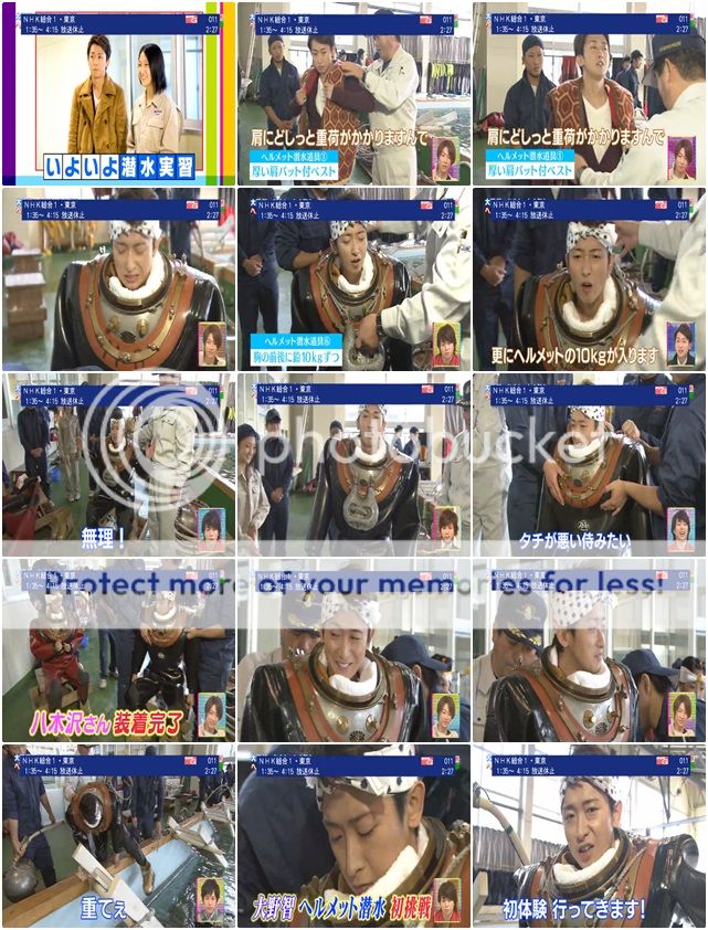 下水前,先回到攝影棚。潤看著利達介紹的企劃自己說的很有趣,感覺像是他的企劃一樣熱誠。(不免吐槽自己了)讓門把試試看戴上那些裝備。阿翔才戴了其中一個裝備就說重了。不過NINO說翔戴起來很貴氣。哈哈哈!