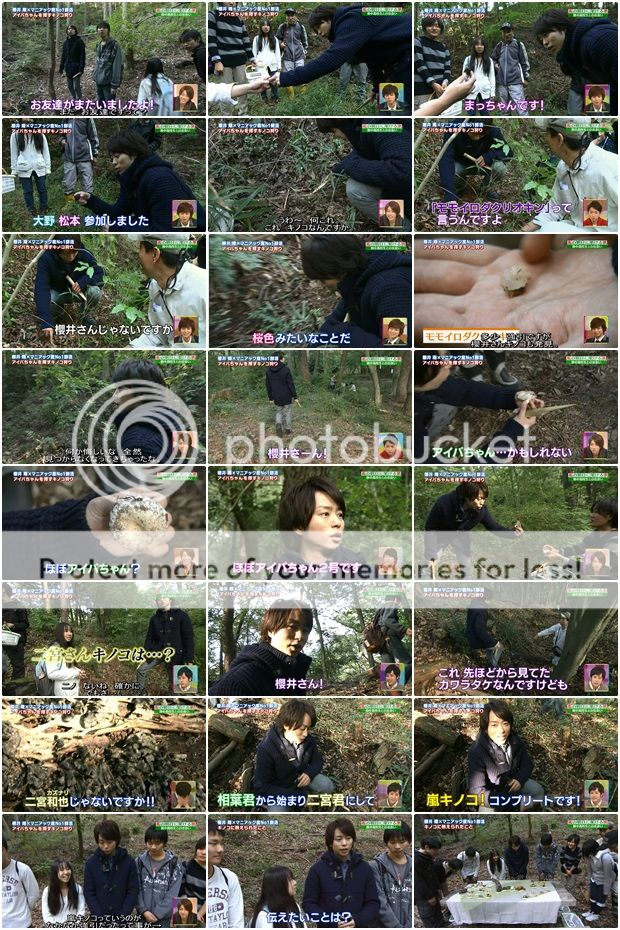 阿翔好忙喔,每次部員找到阿翔的朋友都會一直叫他。哈哈哈!部員們又找到了櫻井桑的另個朋友。『難道是NINOMIYA蘑菇了?』不過是從松樹(松露之類的?)長出來的,松。。。松潤!原來是“松本醬”!小窗口的潤笑的多歡騰!好熱鬧啊今天!阿翔你出個外景原來都把門把帶上了啊。哈哈哈~
