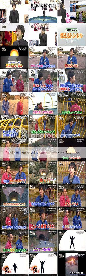 番組接下來介紹日本的名所。首先NINO來到了愛知縣。今天要帶大家去看神奇的一個隧道,竟然會在某個時間看到時會有燃燒起來的感覺。不過所長桑幹嘛要讓NINO玩遊樂設施啊?原來是要從遊樂設施進到一個適合看那個景點的地方。不過NINO玩的很開心就是了(噗)。今天難得是個最佳取景的日子,難道是這麼幸運?所長桑說只是偶然啦。哈哈哈!真不給面子。不過今天應該會看到NINO想看的景象。不過很可惜!!等了好久都沒被NINO看到啊!!於是。。。NINO自己跑向隧道那裡自己演起了火焰的感覺。哇哈哈哈哈!!!!不過之前攝影組來拍攝時確實有看到呢,所以還是捕捉到了景象。