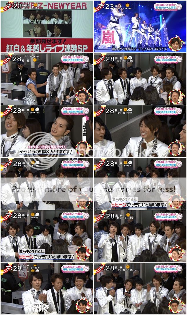 潤又作弄雅紀了。嘻嘻!不過好可愛啊門把,雅紀說2014年也要HEHE的度過,擺出的那個卡哇伊手勢後,阿翔先無奈,然後轉頭對上了ZIP的鏡頭後就擺出ZIP的手勢。潤正在接受訪問,於是利達,NINO和雅紀也跟著一起做了ZIP的手勢。