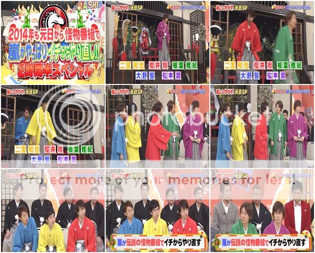 終於元日SP開始了!!今晚還真是多芸人陪伴啊。進場也是一貫的從那個佈景的門後出來,帥氣的五子啊!這件浴衣我絕對比起紅白那套還喜歡因為是他們的代表色。