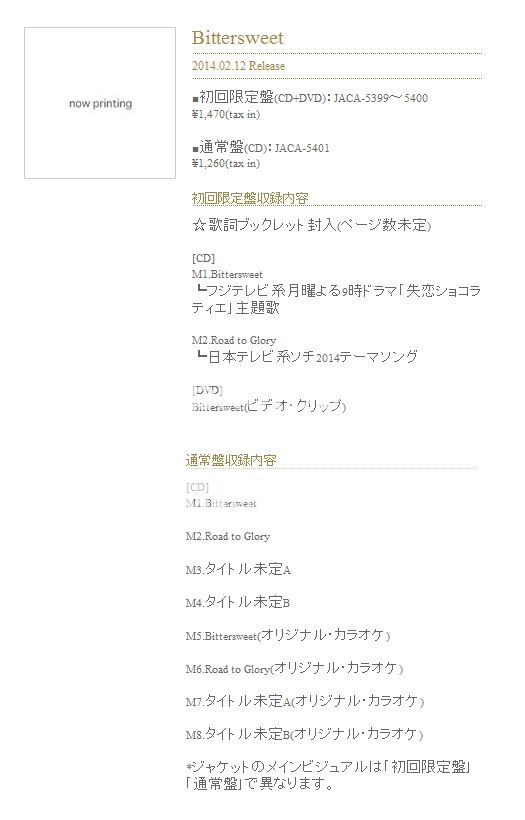 這次單曲名稱就是非常適合我們潤最新月九劇『失戀巧克力』的名稱啊!!Bittersweet就是苦甜,那就是巧克力的感覺啊!!!