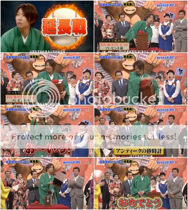 首先,しやがれ的staff桑們,ありがどう!!在雅紀切了蛋糕後,還送上了非常有意義的生日禮物!是個時間的沙漏,讓雅紀可以度過他的在32歲的每一天都能好好珍惜每一分每一秒。