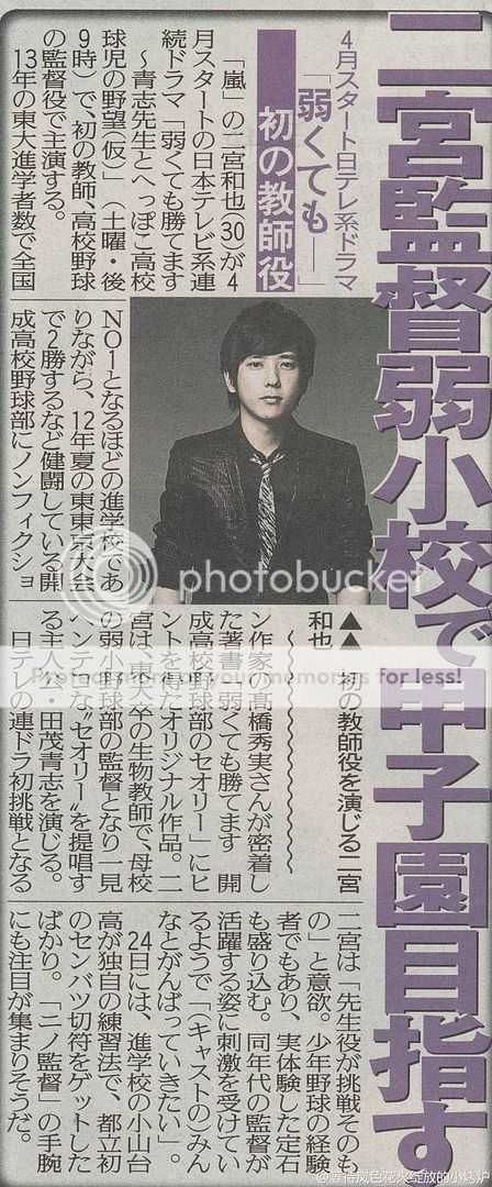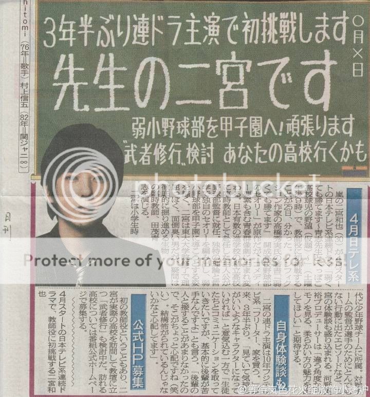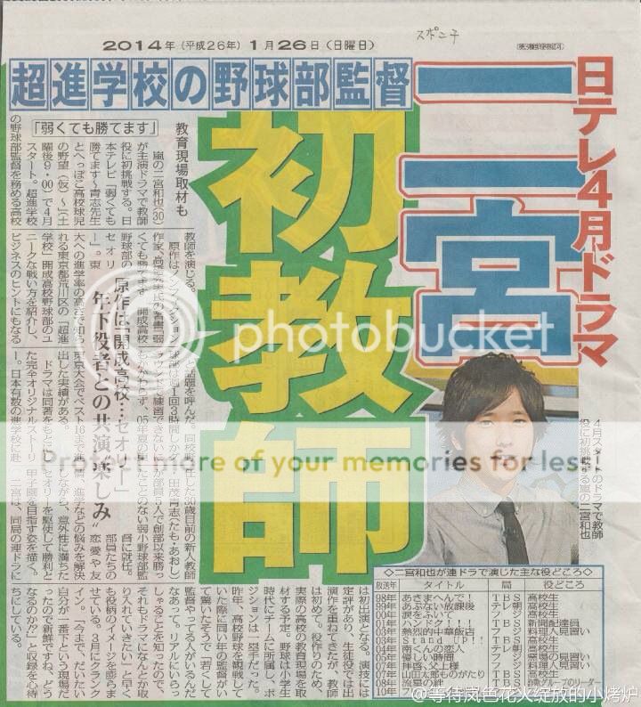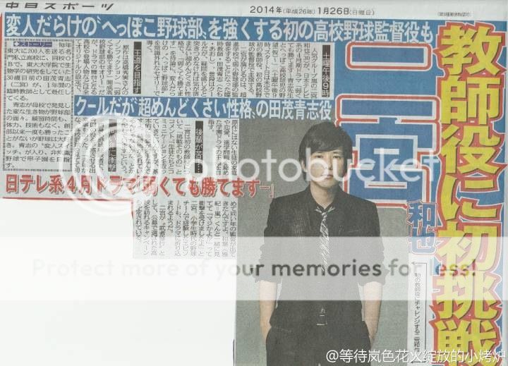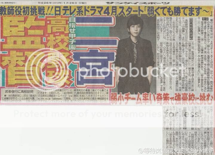終於啊~~~(感動流淚),被我盼到了NINO戲劇的消息!之前就一直在傳言2014年會上新劇,可是一直沒正式發布消息所以我就一直在期待著。今天終於發布了消息!而且在日本所有的報紙上都有大篇的報導啊!!!果然是我們演技一流的偶像!非常受大家期待!