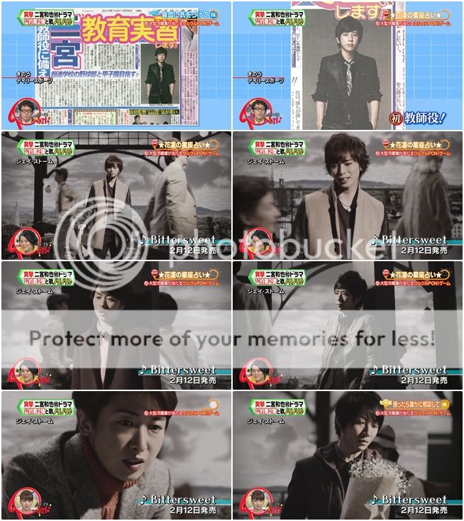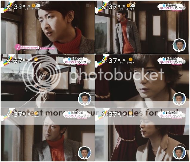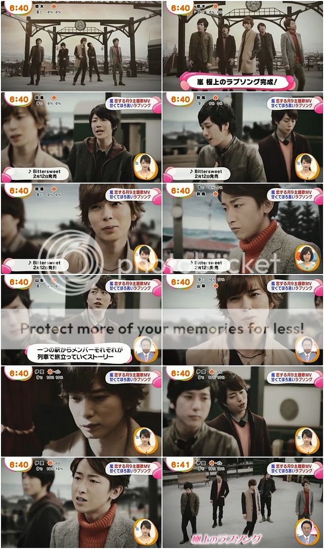 今天早上一進到公司就看到了我一直在期待的畫面!!!今天早上所有的新聞台都播放了嵐的最新單曲『Bittersweet』的PV初披露畫面!!首度披露就讓我非常期待這首歌的PV了。原因很簡單因為門把都太帥氣太成熟有韻味了!!而且很多畫面都是在火車站,門把坐火車之類的,感覺好像哈利波特喔~哈哈!你們是要去霍格华兹找哈利嗎?哈哈哈!不過這次PV畫面品質實在是太贊了!!給J家點一萬個贊!