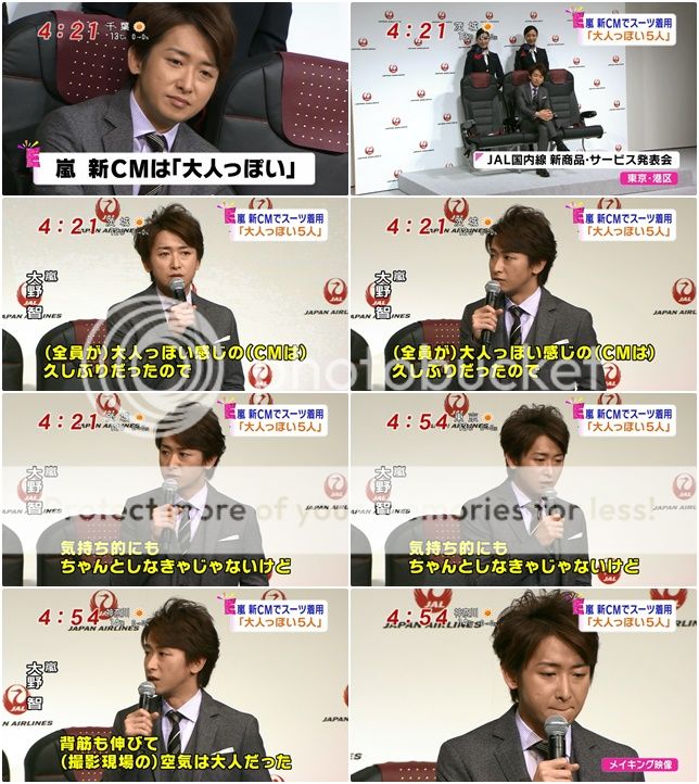 首先,我們嵐今年再次連續代言JAL航空公司!今年的新CM是關於從5月開始要入列的最新一系列JAL的國內線飛機。更寬敞的空間、全席皮質的座椅、機上還附設SKY WIFI(好先進啊!可以在飛機上用無線耶!)