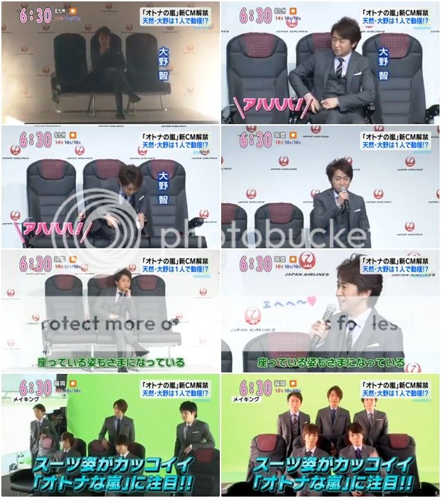 利達表示好久沒看到嵐門把五人這麼大人感的CM了(確實呢,想像之前的紫色外星人、和鴨子對視、等等)。超級有氣場的一隻CM!好贊哦,門把第一時間就有機會體驗到JAL新系列飛機型號內部座位的舒適感。話說之前飛日本就覺得JAL的飛機真舒服啊~~還可以在飛機上的目錄裡看到嵐的圖。哈哈哈!不過我是良好市民,當時沒有把目錄A走。哈哈!