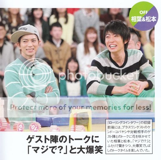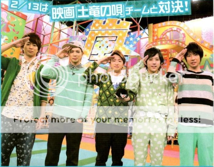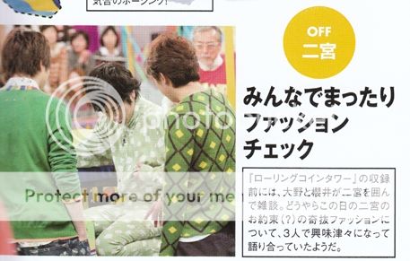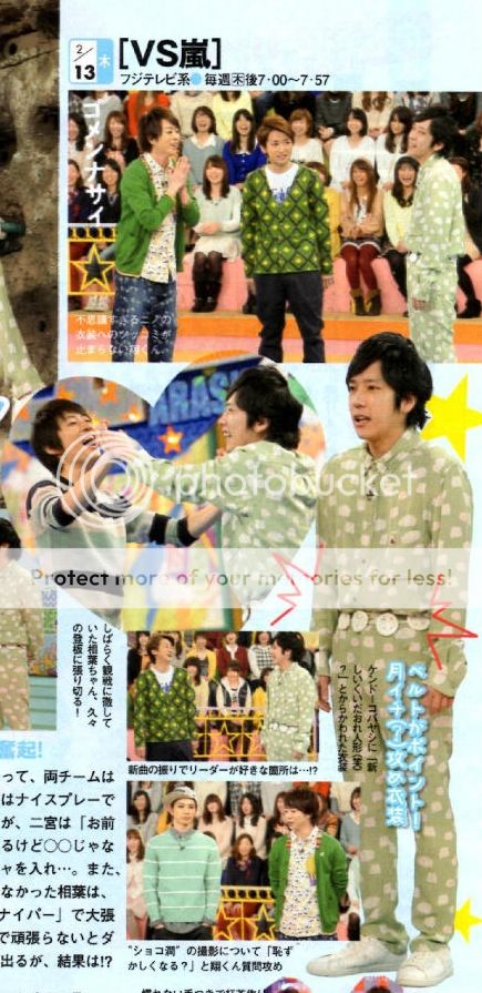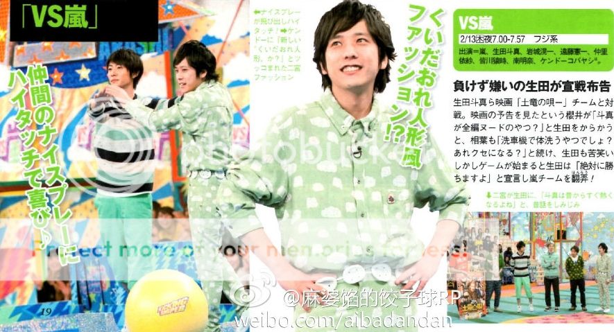 今天發售的ザテレビジョン和TV GUIDE看到VS嵐的預告圖我差點就笑噴了。看看我們NINO竟然穿了睡衣來上節目啊!服裝桑果然進攻回歸了!其實這麼一看,我們阿翔的服裝也好不到哪裡去,也是休閒居家風格(我直接稱作睡衣)。