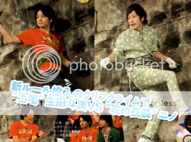 攀岩前做出了自信滿滿的舉動。原因?雜誌你竟然番透了。這次NINO是負責第一棒攀岩(誒誒!竟然不是常規來負責台場下巴),誓言要留下60秒時間給PLUS ONE負責台場下巴。喂喂!!也太少了吧。至少要設定目標15秒解決你的部分吧(暈倒)。