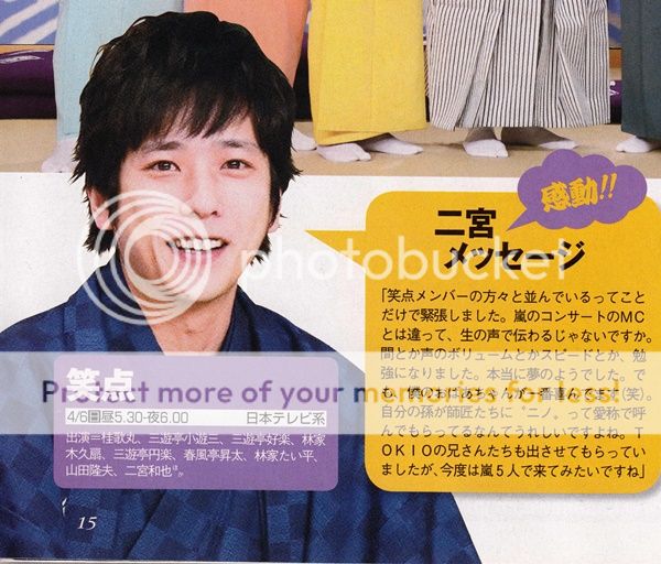 之前傑尼斯家的也只有TOKIO大哥們來過番組。NINO表示下次希望嵐五人有機會一起來番組,到時候他要來做那個發派坐墊的人。哈哈哈!