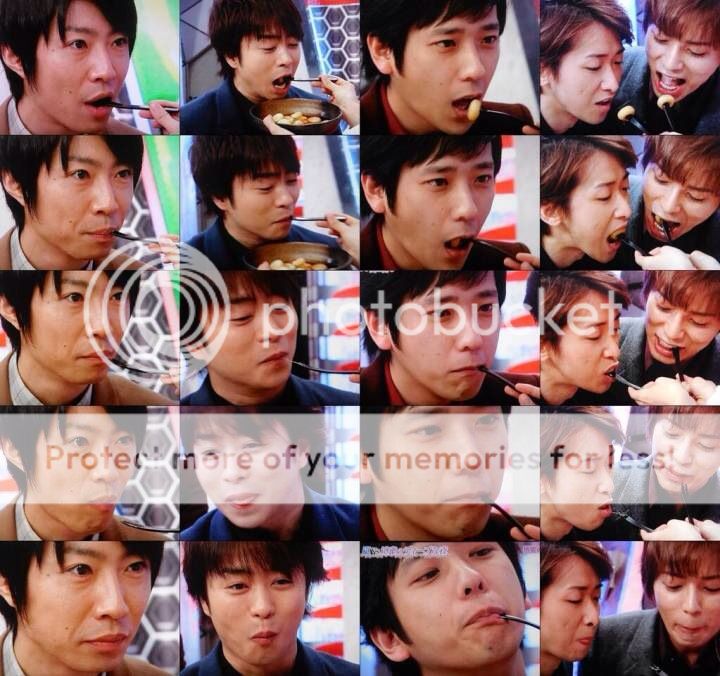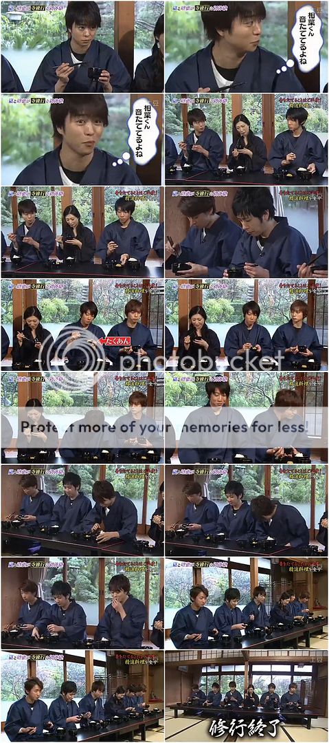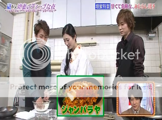 三位在廚房很認真的料理,其他三位門把在攝影棚等待時,看播放畫面,雅紀還敢取笑潤的表情很色情。哈哈哈!真過份啊你們!(笑)