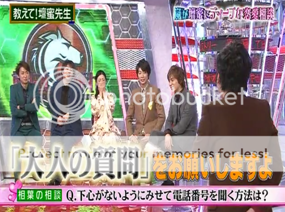 雅紀問要如何比較不那麼直接,暗地裡的問對方要電話號碼。NINO就吐槽『不是讓你問大人該問的問題嗎?』(怎麼會這麼小孩子的問題啊!雅紀,你到現在都沒和女生要過號碼嗎?真清純啊~)