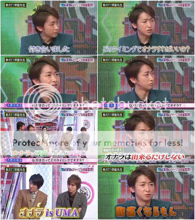 雅紀也有一段蠻好笑的,就是NINO說大家可以輪流問壇蜜桑關於戀愛的問題。NINO請雅紀問個大人該問的問題。哈哈!!完全不相信你家竹馬啊你。