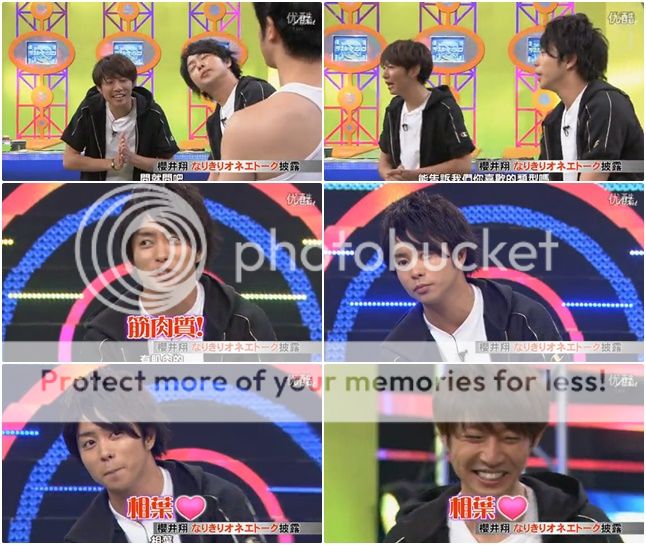 我喜歡雅紀問深入問題時的樣子。感覺是雅紀在和阿翔撒嬌一樣。『請問可以告訴我你喜歡的類型嗎?』(雅紀baby私心喲。問了自己最想知道的問題吧?還要問的嗎?嘻嘻)