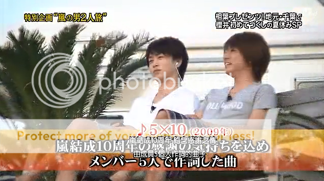 最後兩人坐在一起看夕陽,聽著嵐10週年的創作曲『5X10』我真的無論看幾次都會鼻酸呢。真的好喜歡你們五個人,真的好希望你們可以永遠在一起!!