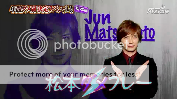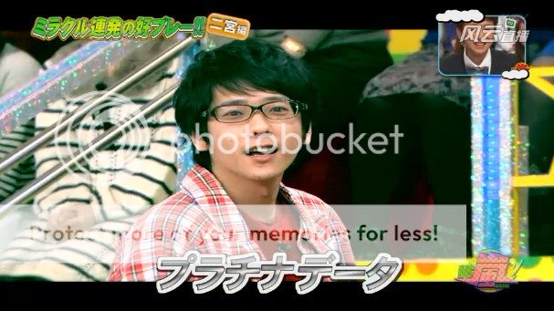 今年潤爺在BANK BOWLING的表現真的很不佳。每次都說要擊倒紅色瓶子但是球都往藍色白色跑去。雖然說沒擊倒過紅色瓶子,但是每次都還是有分數喲。但是!!!最讓我笑破肚子的就是…………潤爺每次的BANK BOWLING都是VTR快轉啊!!!真的出現好多次!!連這個都可以被收入到DAME PLAY,我服了staff桑啊!!!
