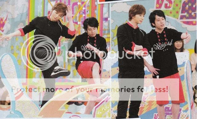 接下來大爆笑的是利達+雅紀+NINO的PINBALL RUNNER。嵐隊的司令台派出的是三人。利達還自信滿滿的說絕對會取得勝利。司令台上的分配是雅紀負責前半場的黃色球、利達負責粉紅球、下半場就由NINO負責說黃色球。分配的相當好啊,但是實際遊戲開始後就完全亂了。於是乎……結果呢……看三人羞愧的摀住臉就可想而知啦。哈哈哈!