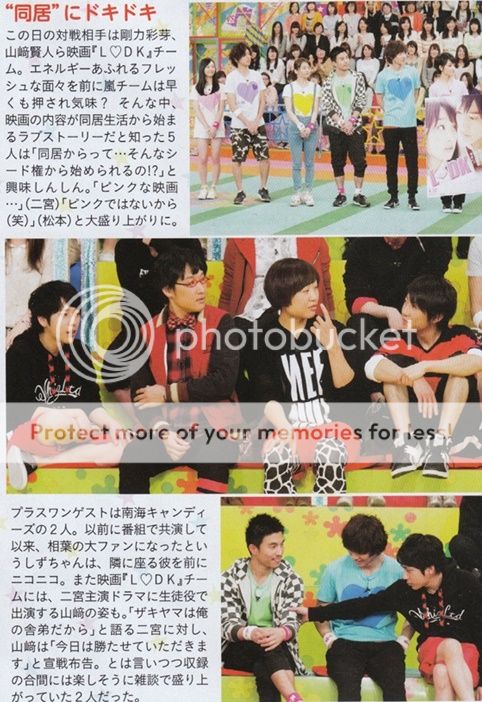 首先,這期番組的對決嘉賓是『L❤DK』的映畫組。而PLUS ONE是南海キャンディーズ兩位。話說,山崎桑一直都很喜歡雅紀。可以以PLUS ONE來番組應該很開心吧!
