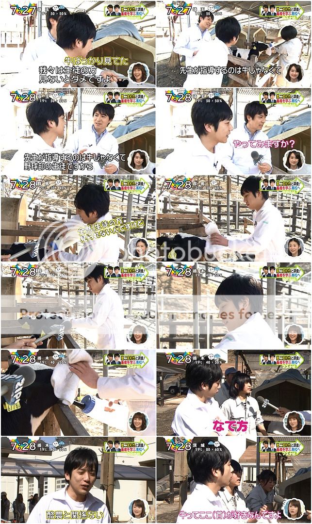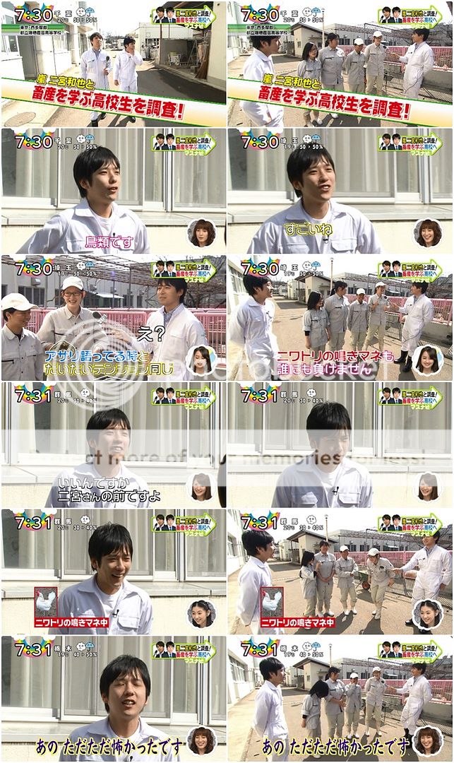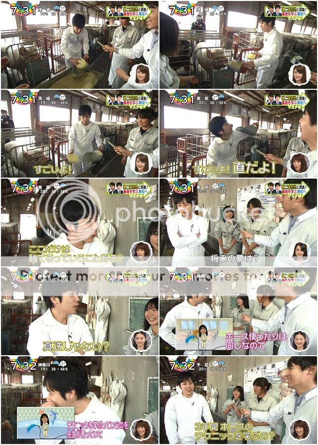 輪到NINO上場,NINO順勢接過那個裝牛奶的桶子直接把還在噴出來的牛奶裝進去。NINO!!你啊!!真是個好會做綜藝梗的藝人啊!之後終於認真的來擠牛奶了(牛小妹,你多幸福啊~~)。老師說我們二宮先生的手法非常好。原來你有這樣的天份啊!老師還問NINO先生有沒有想加入他們成為飼養者?哈哈!不行啊!!NINO是嵐的、是我們的!(其實是不能想像NINO去擠牛奶的樣子啦)