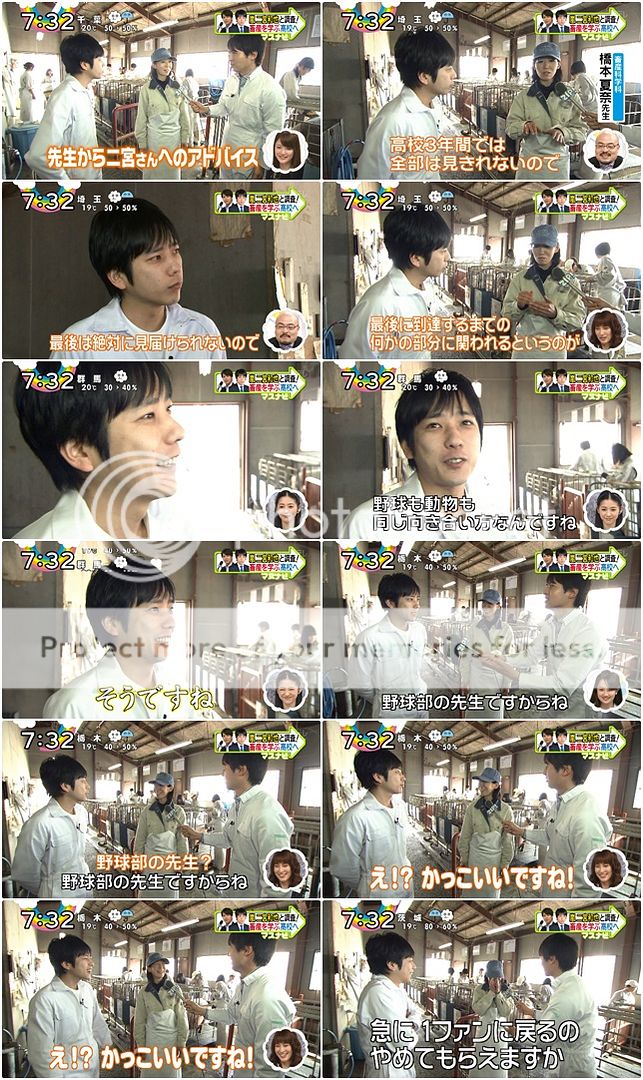 訪問到的這個學生其實是野球部的(這麼剛巧!)。身邊的是野球部監督。監督說自己10年前也是這所學校的學生,回來擔任監督。是說學生現在理了個平頭。再看看監督的頭,是有頭髮的!NINO就安慰說10年後就是這個樣子。哈哈!