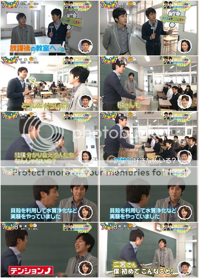 現在已經是下課時間了,首先NINO和MASU桑先到這個教室。進到教室,某位女學生『啊!這是NINO?』超級冷靜的!MASU桑轉身問NINO『一直以來都沒看過這樣的反應呢。』(因為平時都是尖叫啊。)NINO『真的呢。』哈哈!超級冷靜的反應。哇哇!學生們你們太酷了。