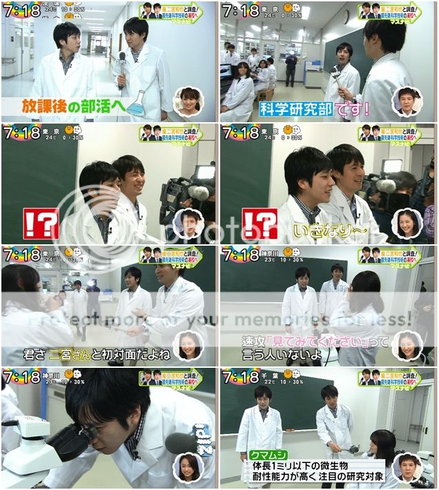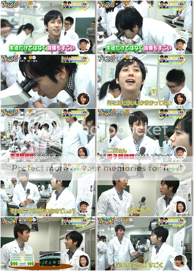 接著穿上實驗室的白袍,NINO要到科學研究部了。才剛踏進去,女學生就叫NINO來看。哈哈!!馬上行動?果然做科學的好不科學啊。你們面對的可是嵐的二宮和也啊!!