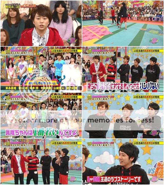 換LDK上場,RUNNER是桐山君。桐山君好安靜哦,基本沒聽到他說話。司令台上是三位美女演員。伊藤桑直白的對司令台上的三位美女說剛剛嵐隊司令台上的表現實在太糟糕了。NINO『不要那麼直接嘛。』於是山里桑揭破我們家NINO『剛剛NINO還在這裡小聲說其實他們是知道對方司令台是三位女生才會這麼做的。』噗!!!我們小惡魔真的好會找理由的。NINO『總之就先想好作戰計劃吧。』