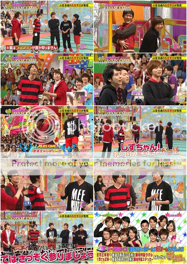 下來,請出這期要來棒嵐取得新年度第一次勝利的PLUS ONE。南海candies一出來,我想利達那是嫌棄的表情吧?哈哈!不過他們還真常來VS呢!門把看sizu醬出來就開始和她攀談,直接忽視走在後頭的山里桑。然後阿翔直接連訪問都不訪問就立刻進遊戲了。哈哈!不過更過份的是番組staff桑吧。被山里桑抗議後還是連個鏡頭都沒給他!
