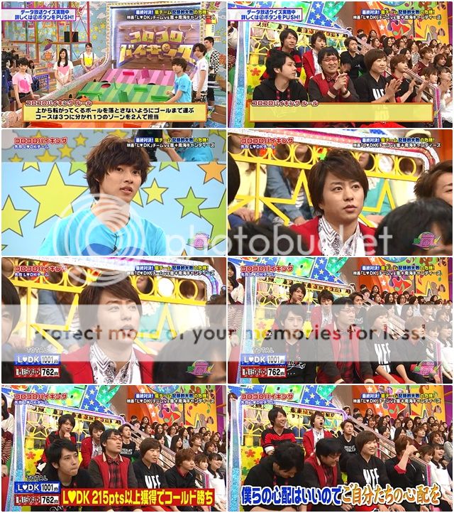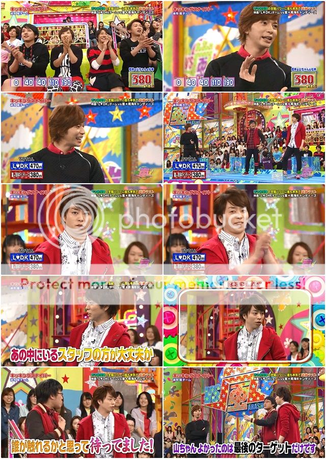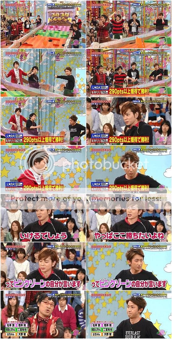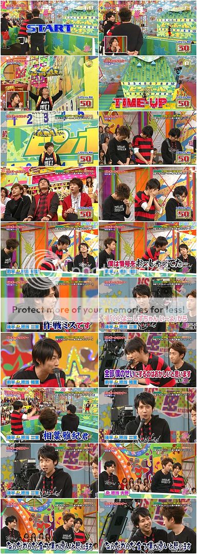今天嵐隊橘色區是利達和山里桑。現在只要嵐隊有290分以上就逆轉勝了。潤爺施加壓力給利達了『可以做到的。』(是肯定句,不是問句喲。)無論如何新年度第一番不能輸喲。山里桑說全部交給利達來給指示他配合。阿翔說『但是我們還是有負30分。』