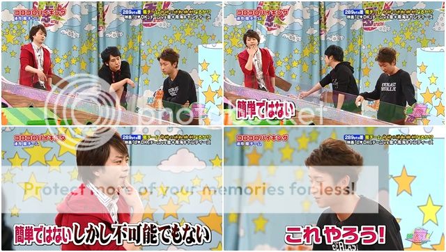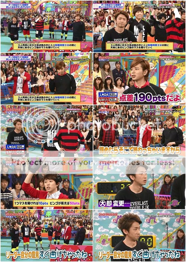 首先是嵐隊。這個時候伊藤桑絕對是cue潤爺。潤『如何是好呢,差了190分。』剛好站一起的利達、sizu醬和雅紀『。。。』噗哇哈哈!!staff桑不要這樣配字啦。忽然利達整個大轉變似的開始給提議了。竟然!!!!我真的很少看到利達主動提出主意的!!!利達你真的不一樣了!!阿翔也驚嘆到。利達你那得瑟的表情啊!