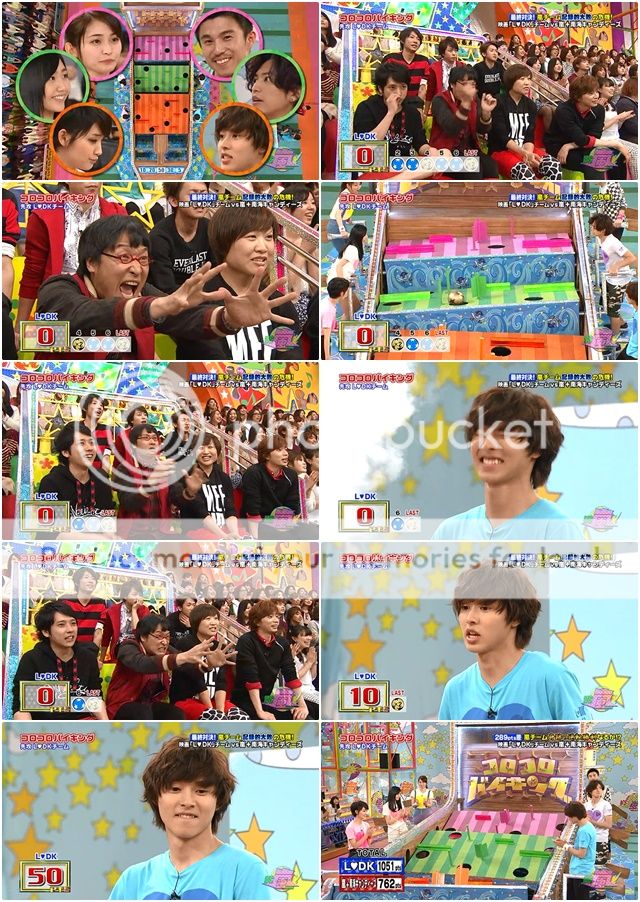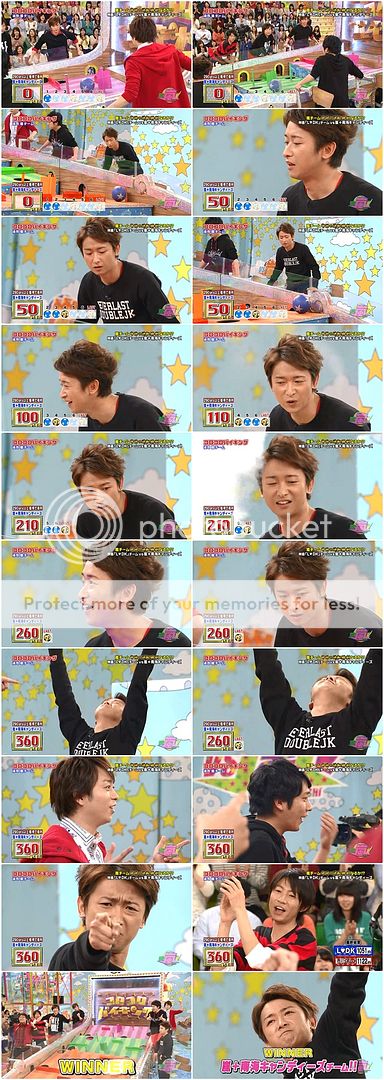 好了,扯了那麼遠。趕快開始遊戲。沒想到被山里桑在旁邊不斷念咒語(的感覺??)最後LDK殘念啊~~~前面4/5顆球全部都掉洞裡去了吧。最後得50分。所以嵐隊有機會翻盤了。