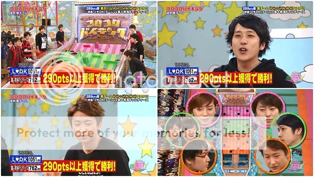 利達太厲害了呀!!!!!すごい!!!我看番的時候就不斷說すごい、すごい、すごい!因為真的太厲害了!!全部球都被利達送進50分了,只掉了一顆藍色球。越玩到後面利達表情越來越有自信。最後一顆金色球順利送進50分,利達立刻雅達~的舉起手了!利達你太強了!!!你是誰啊你!!就是嵐的利達嘛你!!(<_< 廢話!)