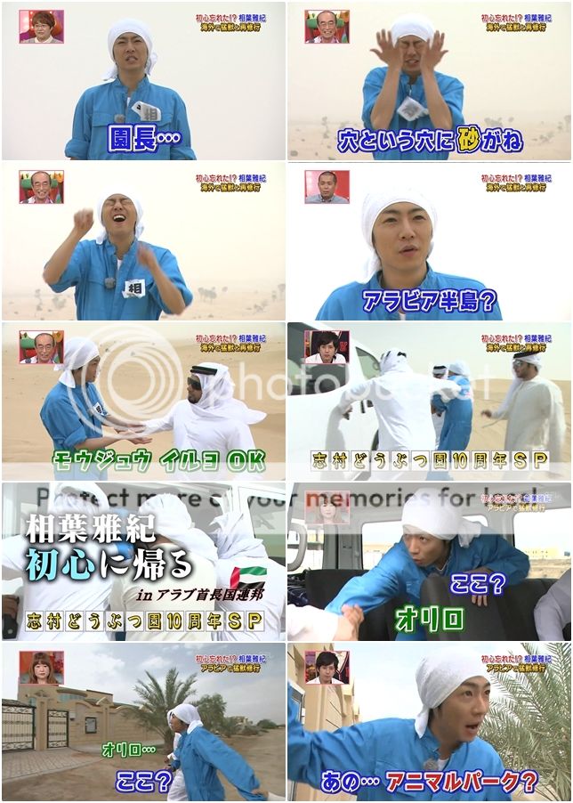 於是……雅紀就這樣,硬生生的出現在了一大片沙漠之中,被沙吹的都睜不開眼睛了。是來到什地方啊?阿拉伯半島?忽然幾個大男人出現把雅紀拐走了。笑。但是他們喊“愛拔”的那個發音好可愛啊。雅紀後來被拐到了一間很豪華的屋子前。雅紀疑惑『動物就在裡面?』