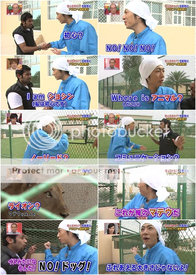獅子會追著球跑,所以主要不要miss就好了,但是這麼緊張怎麼可能不miss啊!挑戰第一次後,第二次倒是玩的比較順了。不過到後來還是緊張的連手都動用了。不過好笑的是,雅紀一不小心踢那個球直接打到獅子的臉!!!!好可怕啊!!還好獅子是直接追了球,不是壞很雅紀啊。不然就……雅紀一直拼命說SORRY~最好它聽的懂啦。雅紀覺得自己好像一下老了三歲的感覺。心臟都要被嚇死了吧。辛苦了雅紀!!!