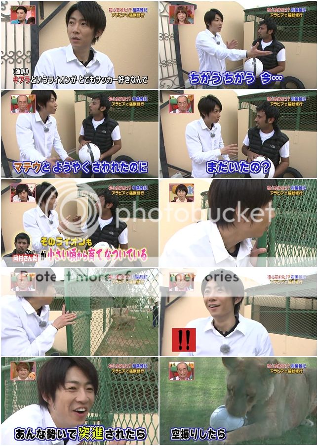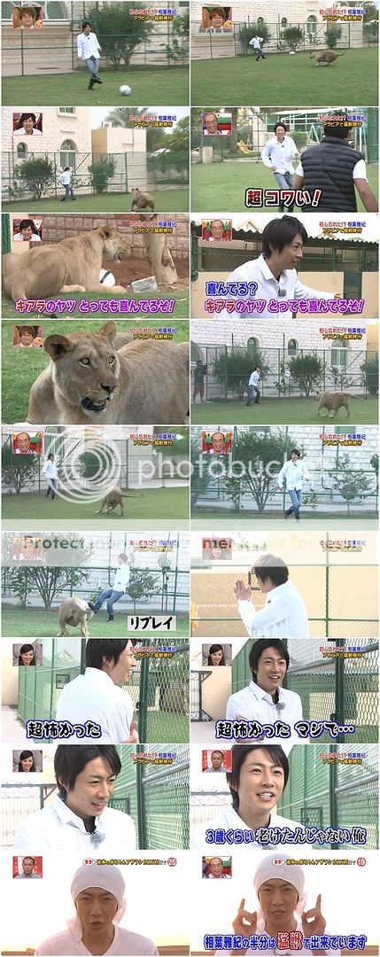 但是你以為挑戰就這樣?才不可能那麼簡單!竟然要雅紀和獅子玩足球!!!!!!一不小心還會直接被獅子撲倒!啊啊!!恐怖啊!!
