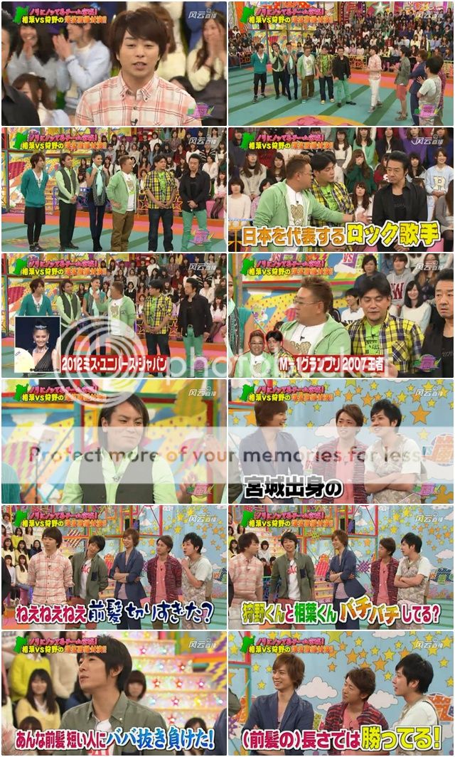 請出今晚的對決嘉賓,是宮城縣隊。這縣市好厲害,不單有個日本有名歌手,還有2012年日本選美小姐的得主,當然最主要的是HEY SAY JUMP的門把八乙女君來了!!但是……請問狩野桑有什麼厲害的?大概是劉海厲害?哈哈!今天怎麼回事啊狩野桑?那個劉海好好笑!話說,今天完全是雅紀VS狩野桑。