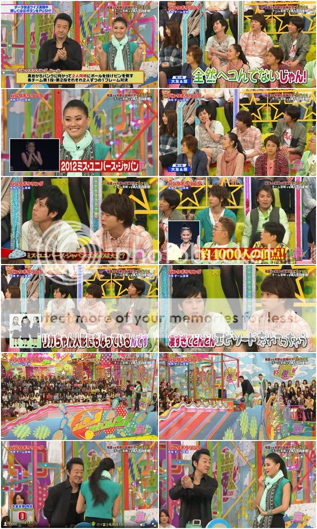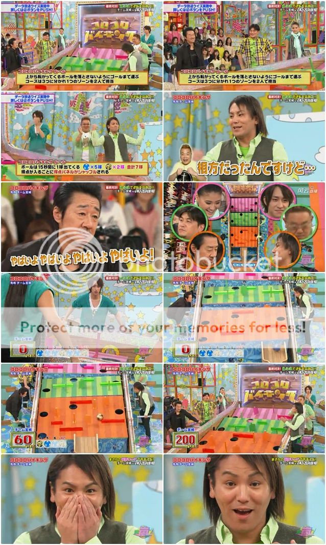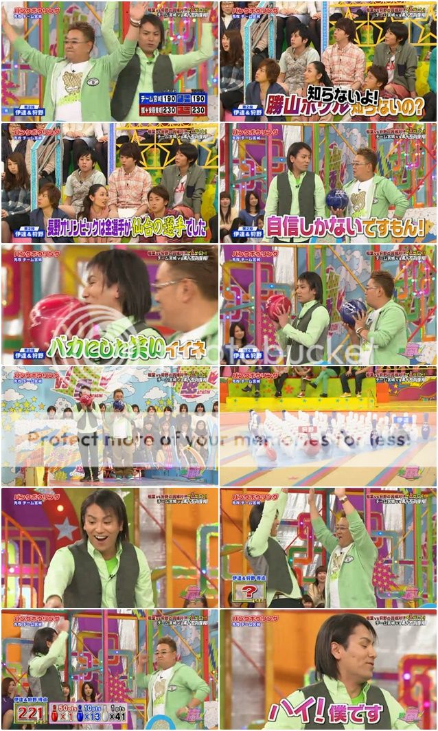 接下來是伊達桑和狩野桑。狩野桑好像不是很有自信呢。伊達桑就吐槽說現場都在笑狩野桑是笨蛋了。其實很抱歉,我對他們的對話沒什麼興趣。這組倒是很厲害,前一組是零分,但是這組就直接追上了221分。狩野桑的球撞到了紅色瓶子。