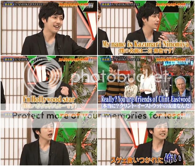 NINO『My name is Kazunari Ninomiya. I'm Hollywood star. My friend is Clint Eastwood.』(翻譯:我的名字是二宮和也。我是好萊塢明星。我的朋友是Clint導演)