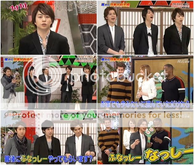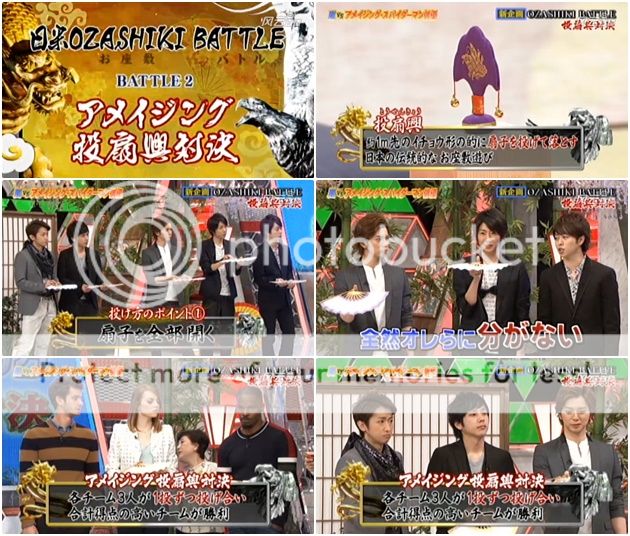 接下來就是嵐要送禮物給嘉賓了,請來了耍日本傳統遊戲的兩位專業人士來表演。但是背景一直聽到利達在說『好厲害啊!』到底是給誰的禮物啊?