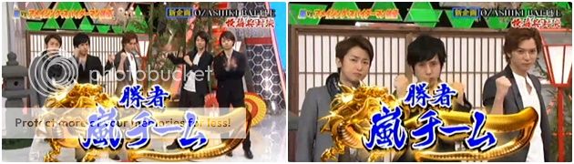 接下來到好萊塢名明星。NINO就是個很賊的小子!馬上先看了老師的那個得分冊子。原來怎樣怎樣可以拿到80點的高分啊,他就瞄準了要那麼做。最後雖然沒能得到80分,但是還是有5分,很高喲!嵐隊現在領先了。