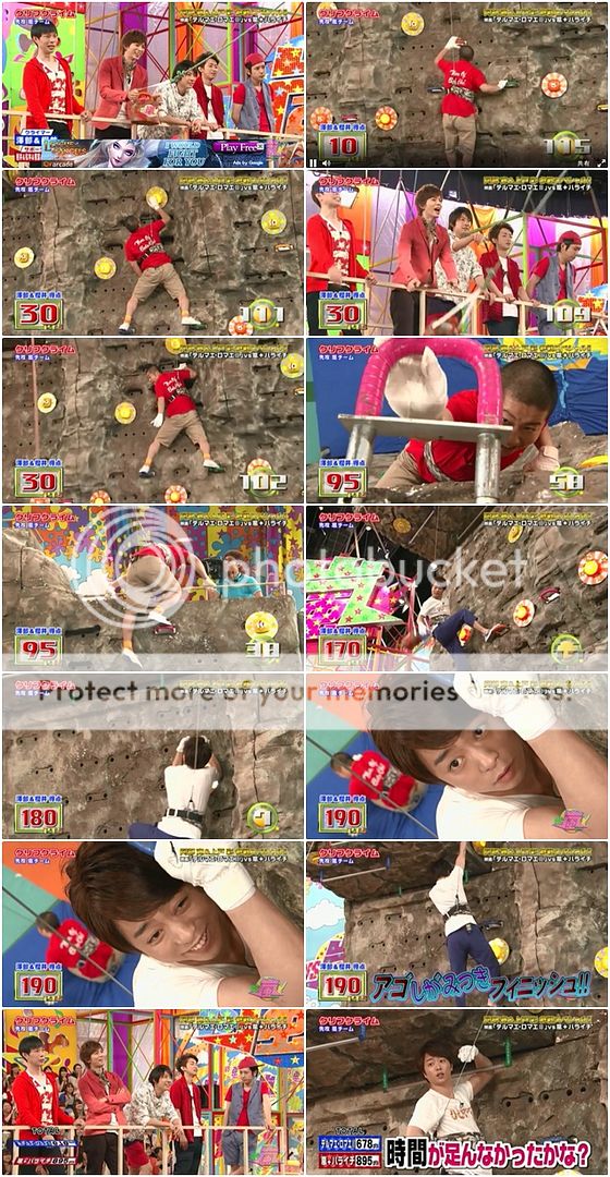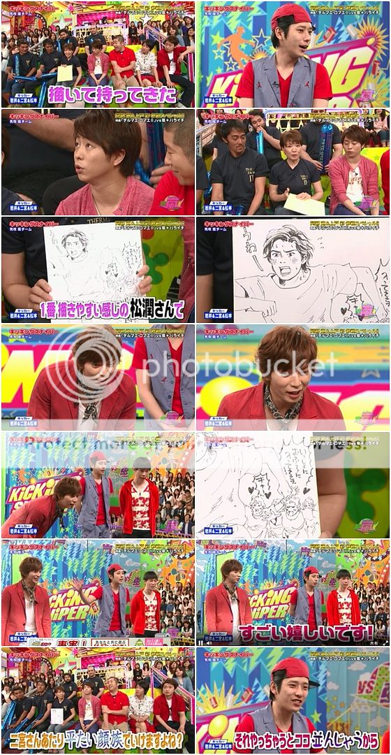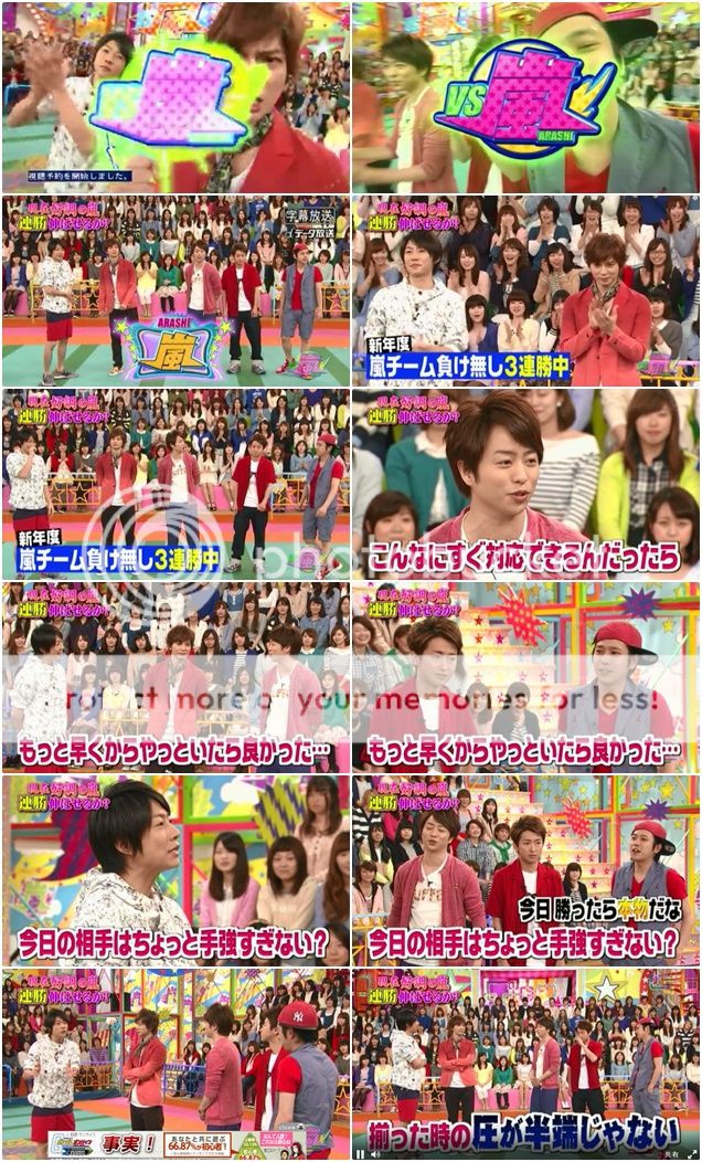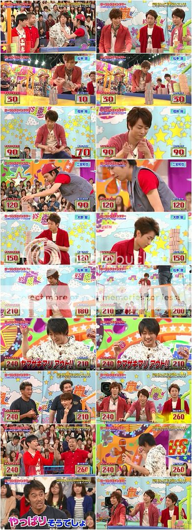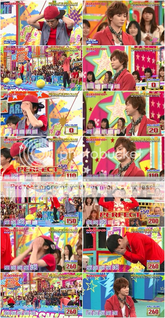 其中一個畫面四隻倒在地上,雅紀站在阿部桑旁邊的畫面我看的都好想笑。然後阿部桑讓雅紀來挑戰。話說最後一個畫面的NINO那身服裝我笑噴了。